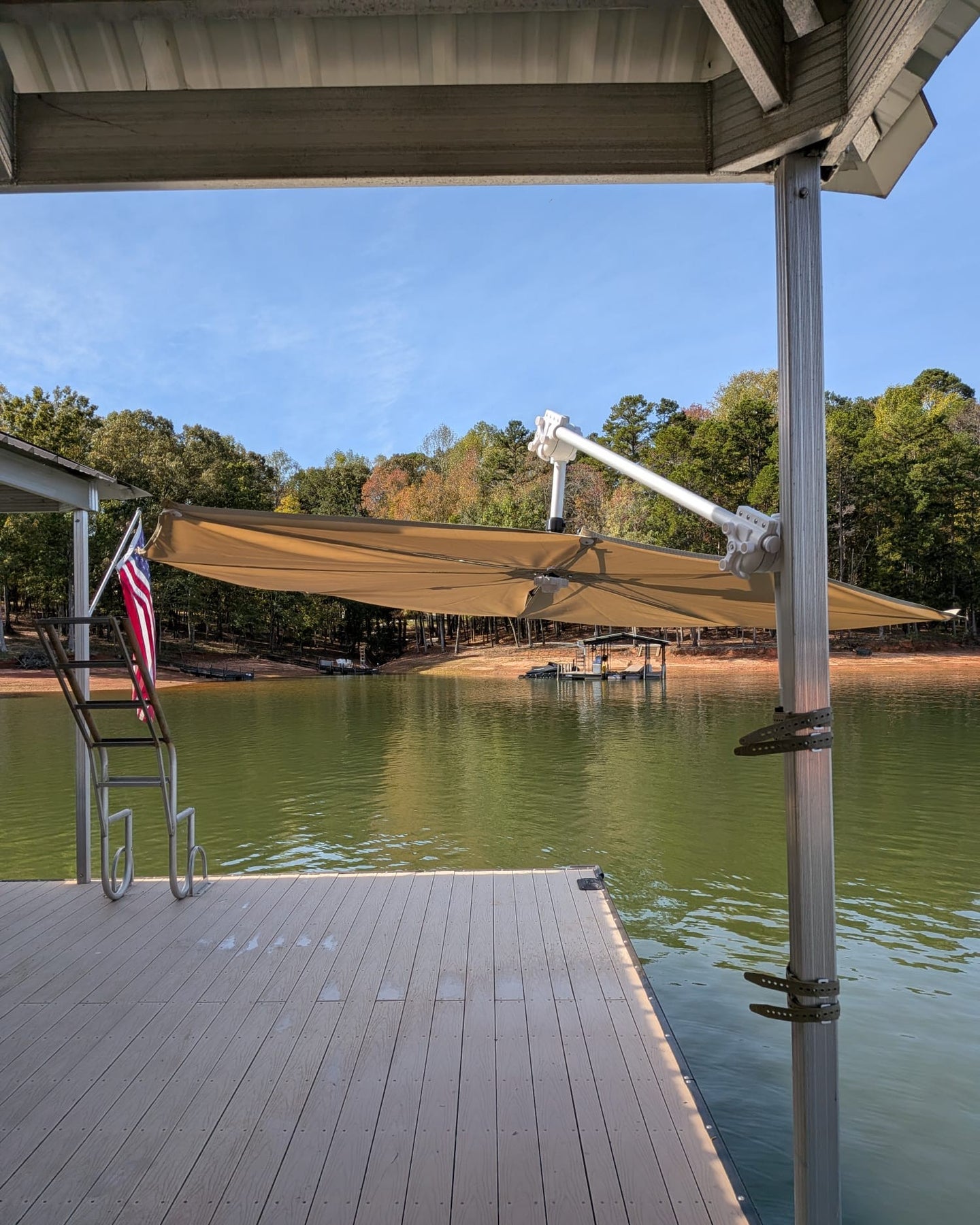 (Ideal no-drilling portable shade solution for sailboat masts/booms, columns, posts, beams, and even trees.)